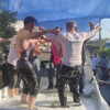 Damadın arkadaşları, bir kamyonetin arka kasasını su ile doldurarak havuza çevirdi. Ardından damadın üzerindeki kıyafetleri çıkarıp, kadın mayosu giydirerek suya soktular. Burada fırça ile yıkanan damat, daha sonra arkadaşlarıyla birlikte ayağındaki paletlerle oyun oynadı.