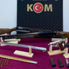 Adreste yapılan aramalarda 2 adet ruhsatsız tabanca. çok sayıda silah parçası ve tabanca fişeği, 2 adet ruhsatsız tüfek ve 1 adet kılıç ele geçirildi.