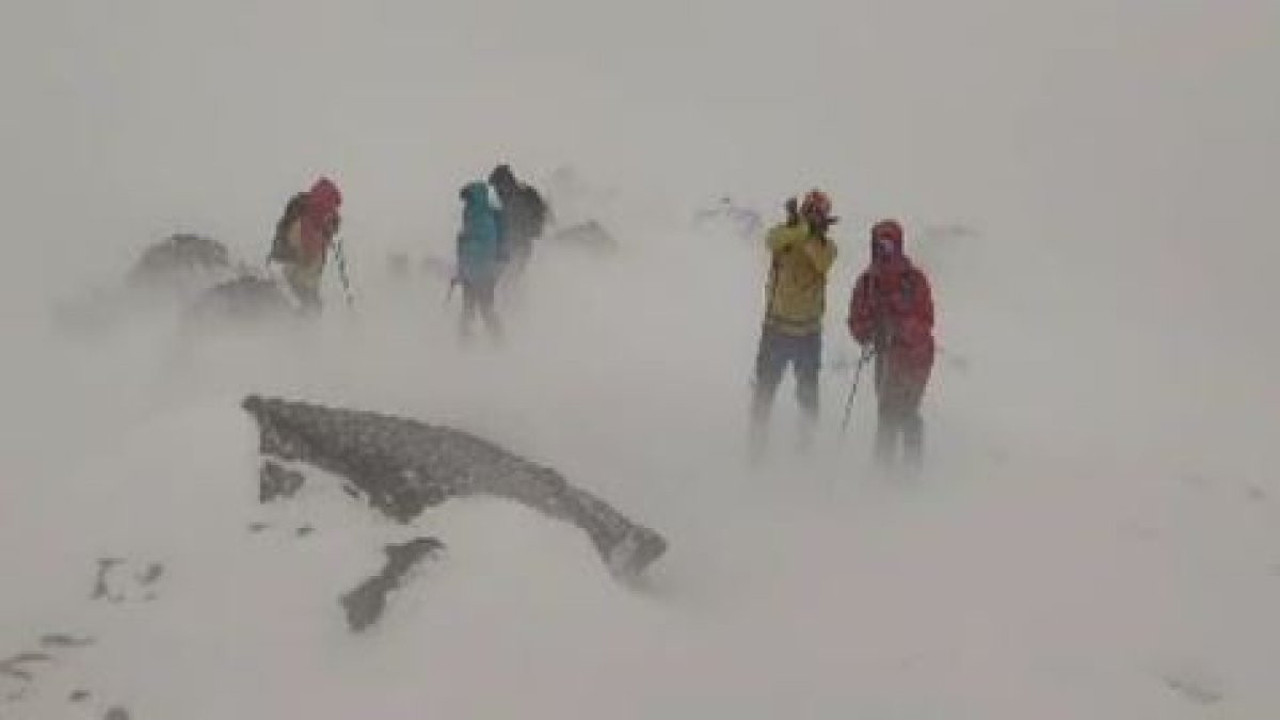 Burada tipiye yakalanan Rus dağcılar hava şartlarının olumsuz seyretmeye devam etmesi üzerine geri dönmek zorunda kaldılar.