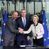 AB Komisyonu Başkanı von der Leyen de Ukrayna''daki savaşın başlamasından bu yana AB ile NATO arasındaki işbirliğinin zaten geliştiğini söyledi. Von der Leyen, "Bu 20 yıllık ortaklığı ve işbirliğini derinleştirmeliyiz çünkü Avrupa güvenliği tehdit altındadır. Bu durum İsveç ve Finlandiya''nın NATO üyeliği arzusunda yansıtılmıştır. İki ülkenin NATO''ya katılmalarını sabırsızlıkla bekliyoruz" dedi.