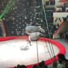 Kentte düzenlenen bir sirk gösterisinde sahneye çıkan 2 fil, ziyaretçilerin oturduğu tribünlere yakın bir bölgede birbirine saldırmaya başladı.