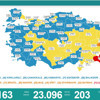 Tabloya göre son 24 saatte 23bin 96yeni vaka tespit edildi, 203kişi de korona virüs nedeniyle hayatını kaybetti.