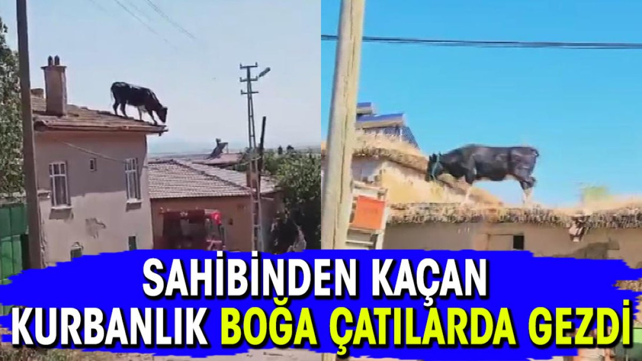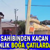 Hacı Mehmetli Mahallesi'nde meydana gelen olayda, bir boğa, sahiplerinin dikkatsiz bir anını fırsat bilerek özgürlüğüne kavuştu. İlk olarak, kerpiçten örülü bir ahırın damına tırmanan boğa, daha sonra yan yana bulunan bir evin çatısına geçiş yaptı.