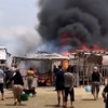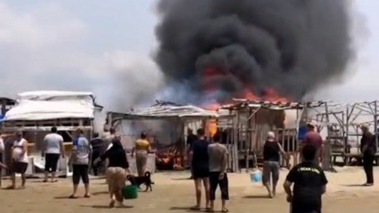 Hatay'ın Erzin ilçesi Burnaz Sahili'nde baraka yangını meydana geldi.