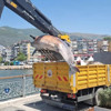 Deniz polisi tarafından yürütülen çalışma kapsamında, Kumla açıklarında fark edilen ölü yunus balığı ekskavatörle kamyona yüklendi.