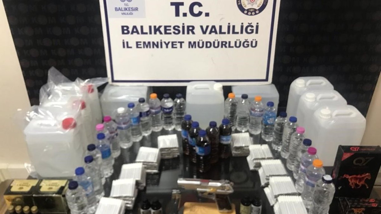 Polisin yaptığı incelemede, ikamet içerisinde sahte alkol olabileceği değerlendirilen sıvılar ve alkol satışı sonucu düzenlenmiş olan satış faturaları bulundu.