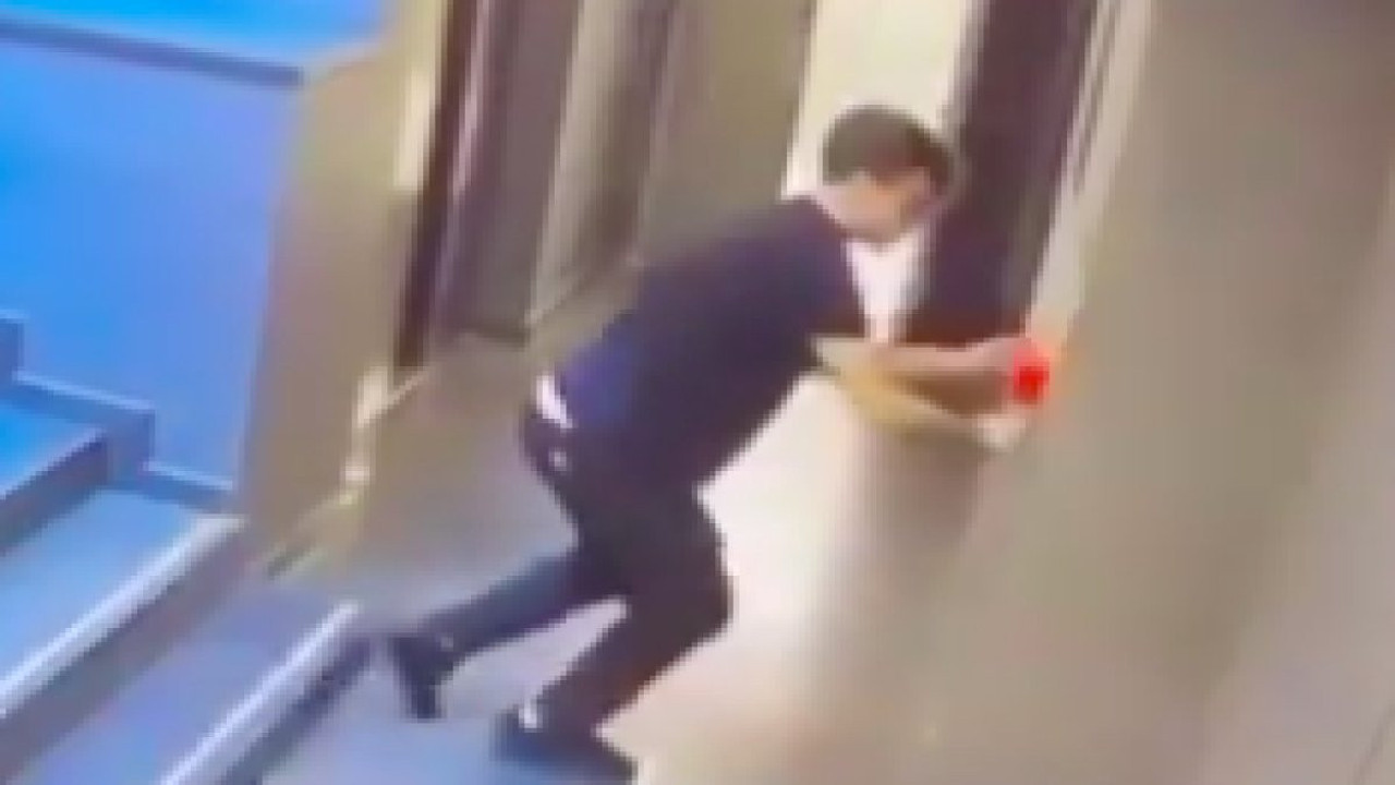 Bir binanın merdivenlerinden inerken ayağı takılan genç, dengesini kaybederek merdivenlerden düştü. Bu sırada yanlışlıkla yangın alarmının düğmesine basan genç, alarmın çalmasına neden oldu. Güvenlik kamerasına yansıyan o anlar, sosyal medyada hızla yayılarak birçok kişiyi gülümsetti.