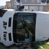 Çarpışmanın etkisi ile öğrenci servisi kaldırıma devrildi.