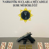 Yapılan aramada, 109 adet sentetik ecza, 18,86 gram metamfetamin, 1 adet ruhsatsız tabanca, 1 adet kurusıkı tabanca, 6 adet extacy hap, 0,42 gram esrar maddesi, 32 adet fişek, 1 adet hassas terazi ve 1 adet uyuşturucu madde kullanım aparatı ele geçirildi.