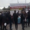 Markette fiyatı 20 liranın üzerine çıkan domatesin bedavaya dağıtıldığını gören vatandaş uzun bir kuyruk oluşturdu ve beklemeye başladı.