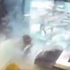 Basınçtan uçan camekan yerinden çıkarak kadını havalandırarak metrelerce uzağa savurdu. Bu anlar işyerini güvenlik kamerası tarafından saniye saniye görüntülendi.
