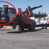Havalanan vinç, ön bölümüne çıkan 7 kişinin ağırlık oluşturmasıyla yere indi. Cep telefonu kamerasıyla da kaydedilen olayın ardından kamyon kasası, getirilen yeni bir vinç ile bulunduğu yerden kaldırıldı.