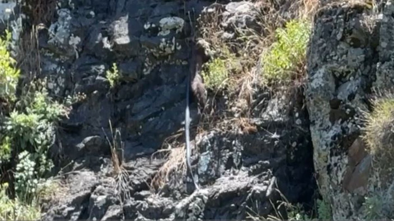 Ormanlık alanda gezinen bir sansar, avladığı siyah yılanı ağzında taşıyarak kayalıklara tırmanıyordu. Tanış, bu ender görülen anı fark eder etmez cep telefonunu çıkararak görüntülemeye başladı.