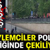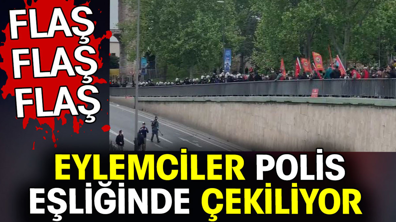 1 Mayıs İşçi Bayramı için Saraçhane'de toplanan grup polis eşliğinde geri çekiliyor. Görüntülerde polisin eylemcilerin üzerine yürüdüğü eylemcilerin de geriye doğru gittiği görülüyor.