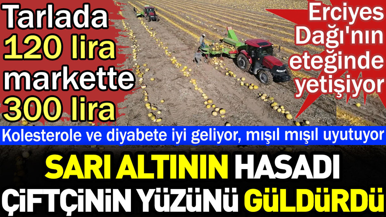 Sarı altının hasadı çiftçinin yüzünü güldürdü. Tarlada 120 markette 300 lira. Erciyes Dağı'nın eteğinde yetişiyor