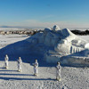 Allahu Ekber Dağlarında donarak şehit olan askerlerin anısına tasarlanan kar heykelleri ilçe çevresinden 200 kamyon kar taşınarak yapıldı.