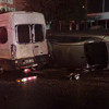 Otomobil, önünde park halinde bulunan servis minibüsüne çarparak durabildi.