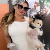 Beyazlar içinde oyunu kullanan şarkıcı, kucağındaki minik köpeği ile sandık başında poz vermeyi de ihmal etmedi.
