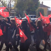 Okul üniformalarıyla öğrenciler ellerindeki Türk bayraklarını sallayarak kortej eşliğinde hep birlikte yüksek sesle İzmir Marşı’nı söylediler.