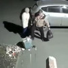 Videoda çöp kutusuna tekme atan bir adamın ardından devrilen çöp kutusunu yerden kaldıran bir çocuk görülüyor.