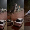 Sağanak yağmur, arabaları sürükleyen ve yolları parçalayan bir nehir oluşturdu. Rus medyası, selin 24 araçlık bir kaza yarattığını ve birkaç evi su bastığını duyurdu.
