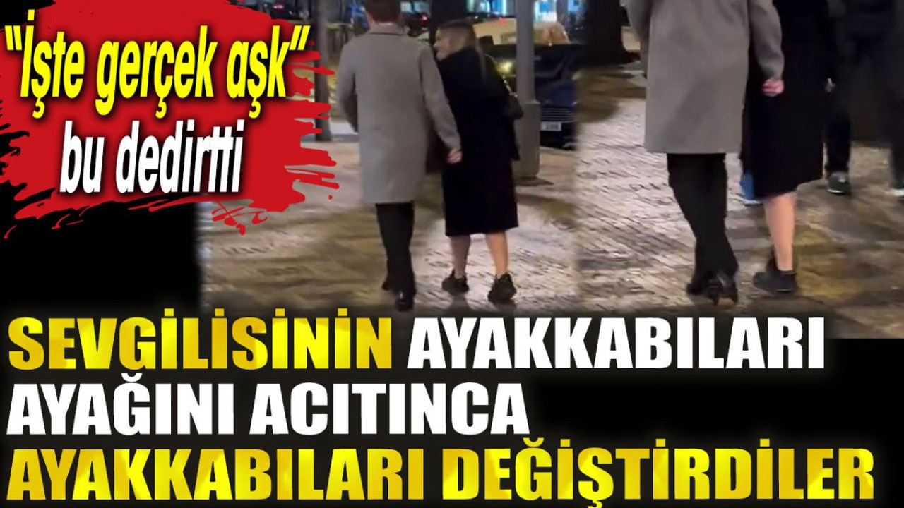 Sosyal medyada popüler olan videoda yer alan görüntülerde kız arkadaşının ayakkabısı ayağını acıtınca ayakkabılarını değiştiren veren çift ilgi çekti.