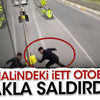 Konuya ilişkin çalışma başlatan polis ekipleri, şüpheli Abdulvahap A. ve Serhat A.’yı gözaltına aldı. Şahıslar, emniyetteki işlemlerin ardından adliyeye sevk edildi. Öte yandan, yaşananlar ise bir vatandaşın cep telefonu kamerasına saniye saniye yansıdı. Görüntülerde, şahıslardan birinin araçtan inip otobüse saldırdığı anlar görüldü.