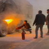 Durumu fark eden sürücü hemen aracı durdururken, sürücü ve çevredeki vatandaşlar yangın tüpüyle alevlere müdahale etmeye çalıştı.