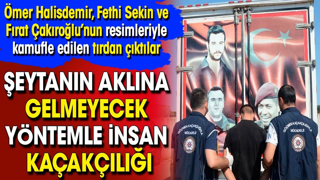 Kırklareli'nde pes dedirten olay. Tır şoförünün şehitlerimiz, polis memuru Fethi Sekin, astsubay Ömer Halisdemir ile Ege Üniversitesi’nde öldürülen öğrenci Fırat Yılmaz Çakıroğlu’nun fotoğraflarını kullanarak kamufle ettiği tırın içinden 67 kaçak çıktı. Olay, trafik kontrolünde tırın şüpheli davranışlarda bulunması sayesinde ortaya çıktı.