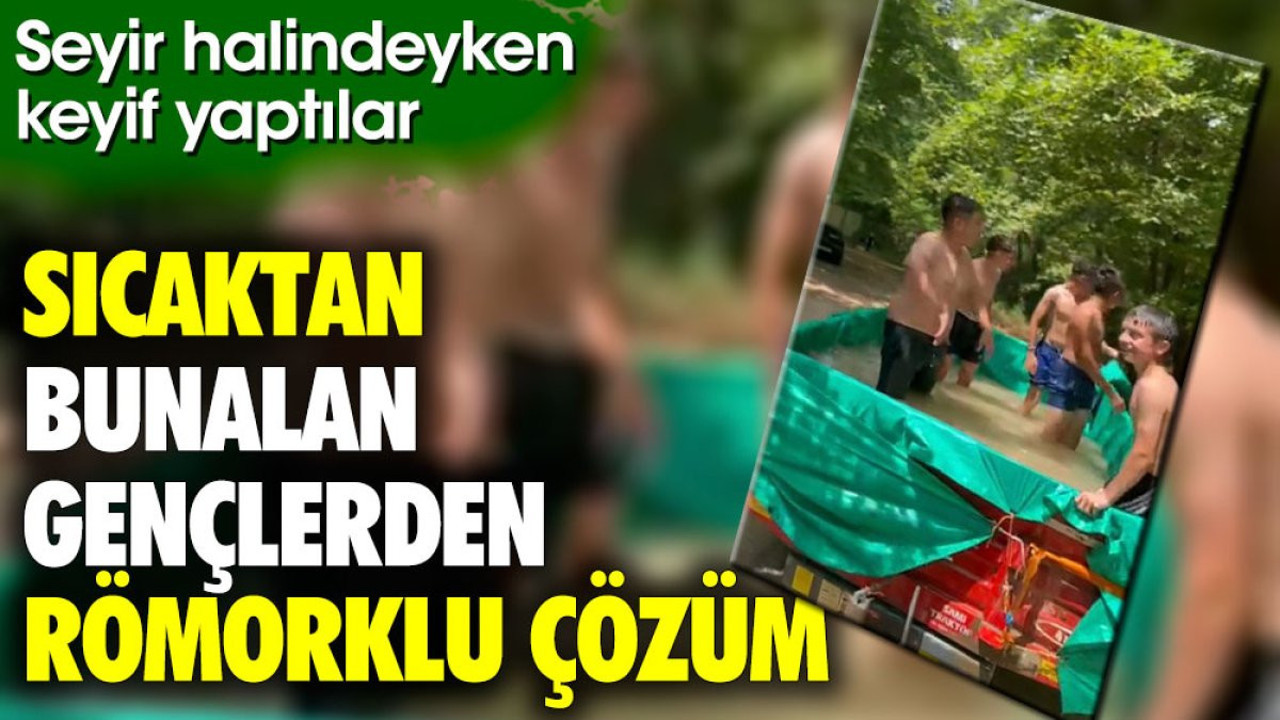 İnegöl'ün Gündüzlü Mahallesi'nde sıcaktan bunalan 7 genç, traktörün arkasında bağlanan römorka su doldurup serinlediler. Zaman zaman seyir halinde de serinleyen gençleri görenler şaşkınlık yaşadı.