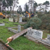 Şehir mezarlığında kökünden sökülen ağaçlar vinç yardımı ile alınırken mezarlık içindeki tehlike arz eden ağaçların da yine vinç yardımcı ile alınacağı belirtildi.