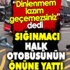 Bacak bacak üstüne atan, ellerini başının altına koyan ve oldukça rahat tavırlar sergileyerek izleyenleri çileden çıkaran sığınmacı; kendisine tepki gösterenlere ise "Dinlenmem lazım, geçemezsiniz" dedi.