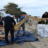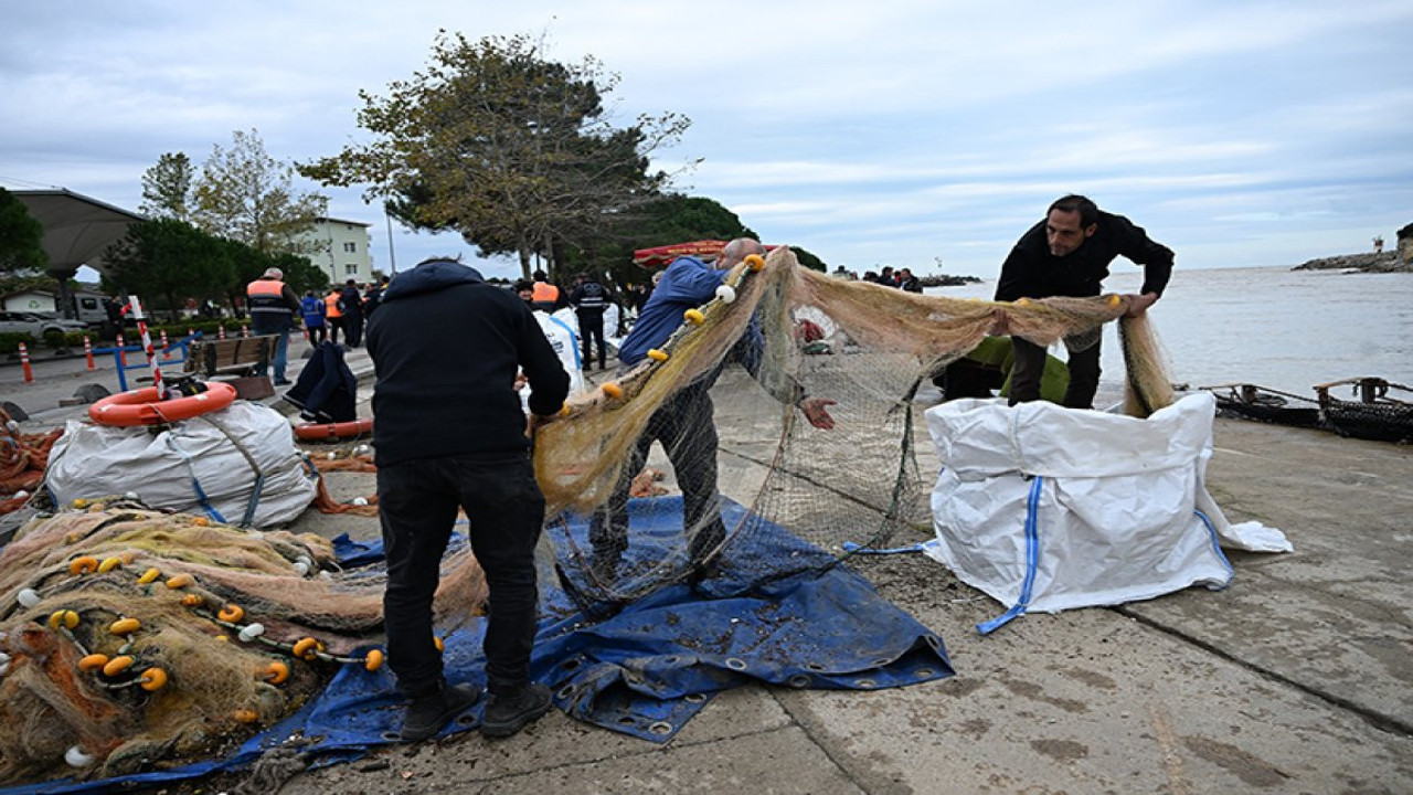 Sel sularının geride bıraktığı çamurlar temizlendi. Devrilen ağaçlar ve direkler kaldırıldı. Fırtına ve selden çevreye savrulan balıkçı ağları da toplanıp onarılmaya çalışıldı.