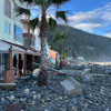 Denizin taşıdığı su ve taşların hasara yol açtığı mahallede belediye ekipleri temizlik çalışması yaptı.