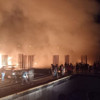 Hastane inşaatında çıkan yangın kentin uzak bölgelerinde bile gözle görülürken vatandaşlar yangını cep telefonuyla kaydetti.