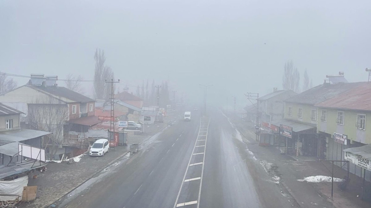 Kent merkezinin üzerini kaplayan sis bulutu, trafikte görüş mesafesinin düşmesine neden oldu.