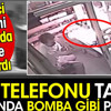 Altındaş, panikle telefonu yere atıp uzaklaşırken, kısa bir şoktan sonra patlayan telefon sonucu ortaya çıkan yangını söndürdüğü görüldü.
