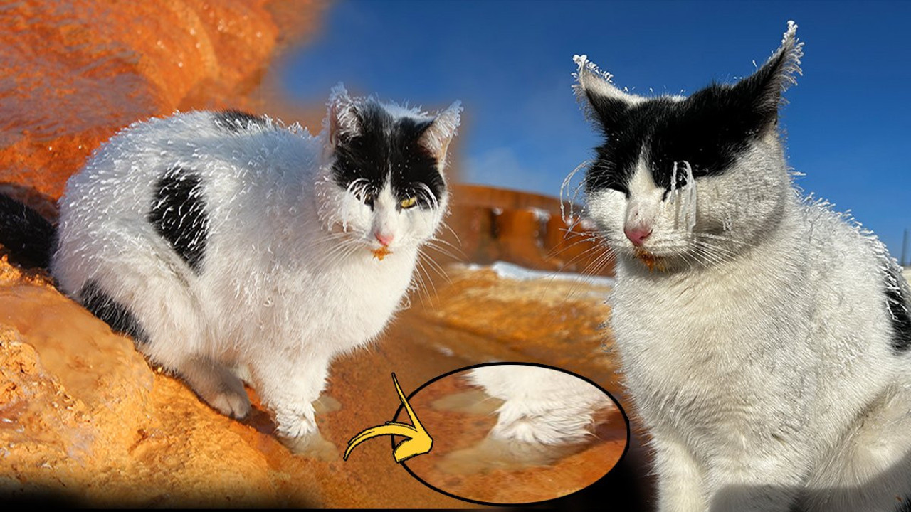 Yüzü, kirpiği ve vücudunun bir kısmı donan kediye İHA muhabiri ve Mevlana Mahallesi Muhtarı Burak Zakir Baş sahip çıkmıştı.