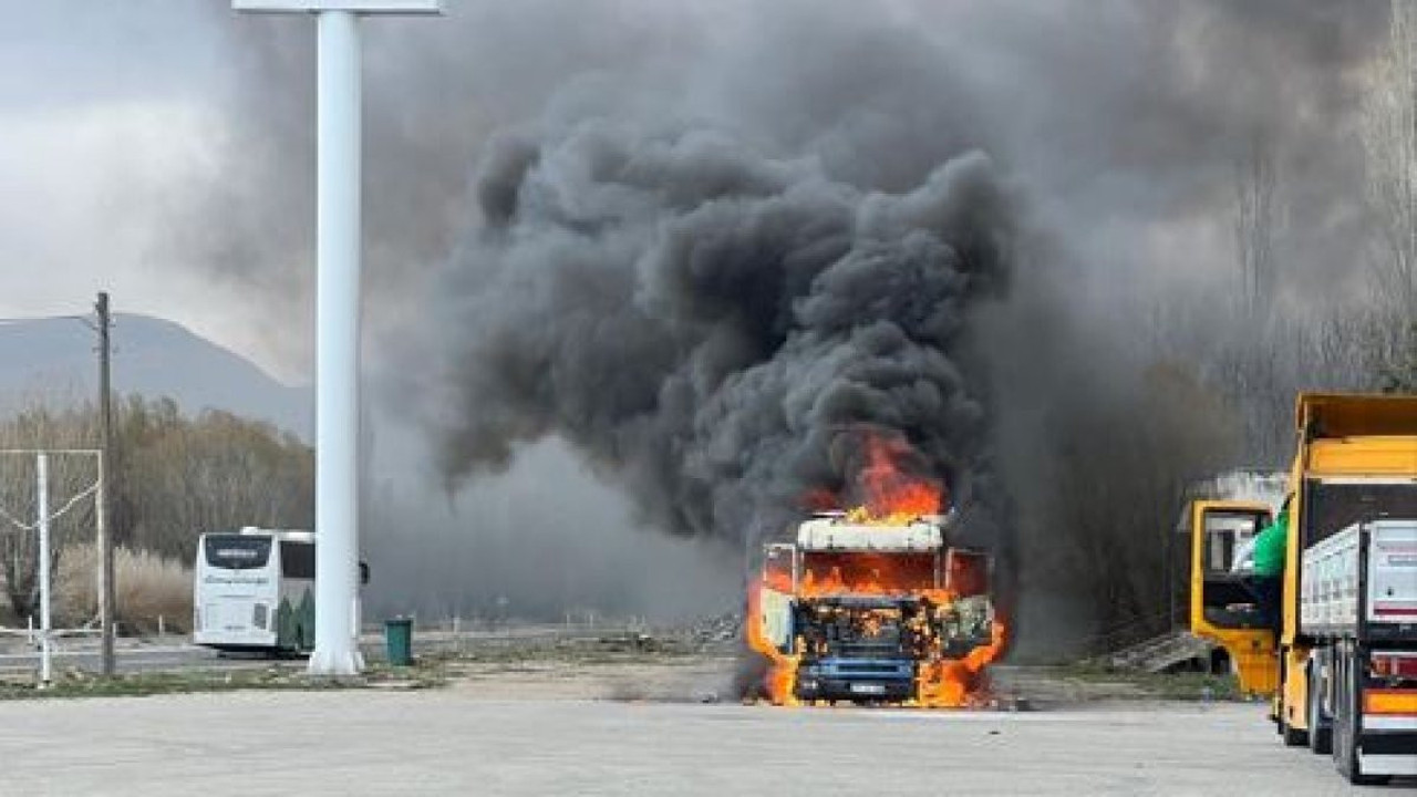 Sabah saatlerinde araçtan gelen koku üzerine durumu fark eden sürücü, bir anda başlayan yangınla şoke oldu. TIR, kısa sürede alev topuna döndü.