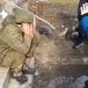 Sivil halk tarafından etkisiz hale getirilen istilacı Rus askeri oturup ağladı.