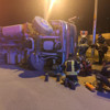 Kazada tır şoförü bulunduğu yerde sıkışırken, hurda demirler yola saçıldı.