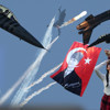 Isı güdümlü füzeleri şaşırtmak için kullanılan alev toplarının da (flare) atıldığı gösteri, izleyenler tarafından merakla takip edildi.