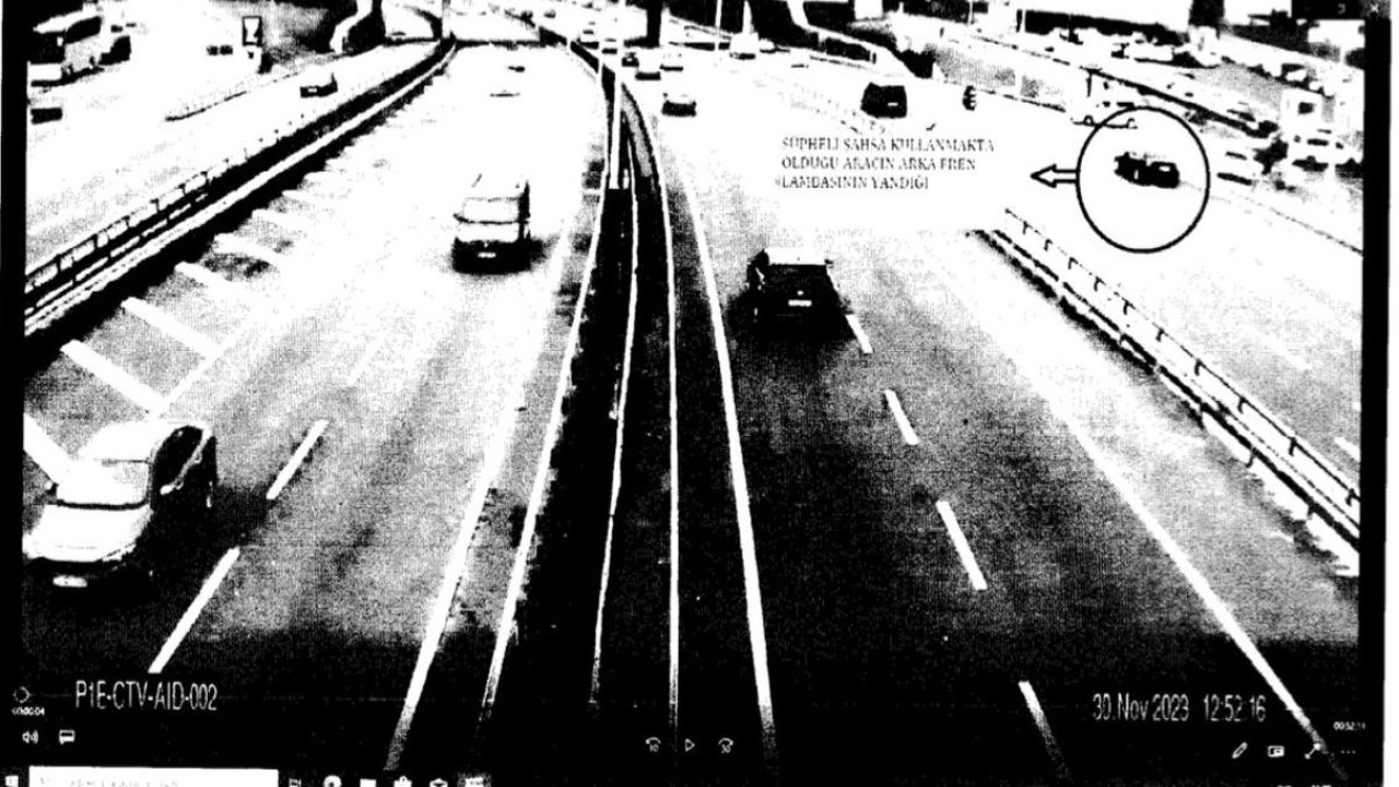 Tutanakta, saat 12.52 dakika 18 saniyede 16 AFL 804 plakalı motosiklet ile 06 CD 4581 plakalı otomobilin çarpıştığı anda, şüphelinin kullandığı aracın arka fren lambalarının yandığı aktarıldı. Saat 12.52 dakika 19 saniyesinde çarpışma anı sonrasında şüphelinin aracına ait arka fren lambalarının yanmadığı ve 3. şeride doğru seyir halinde olduğu aktarıldı.