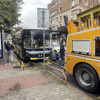 Kontrolden çıkan otobüs, önce yolcu indirmek için yolda bekleyen minibüse çarptı, sonra da kaldırıma çıkıp bir kafenin duvarına vurarak durabildi.