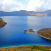 Havadan görüntülenen kaldera kartpostallık görüntüler sundu.
