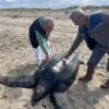 Dünyadaki en büyük sürüngenlerden birisi olarak bilinen, Pasifik, Atlas, Hint okyanusları ve Akdeniz'de görülen deri sırtlı deniz kaplumbağası, Sakarya'nın Karasu ilçesi İhsaniye Mahallesi mevkiinde sahilde ölü olarak bulundu. Geçtiğimiz senelerde ilk kez İstanbul Boğazı'nda görülen bu hayvanın boyu 3 metreye ve kilosu 900 kilograma kadar ulaşabiliyor. Sahilde vatandaşlar tarafından ölü olarak bulunan deri sırtlı deniz kaplumbağası, okyanuslarda en derine dalan ve en büyük mesafeleri kat eden "Şampiyon kaplumbağa" olarak da biliniyor. Soyunun tükenme riskiyle karşı karşıya kalan kaplumbağanın boyutu ise görenleri hayrete düşürdü.