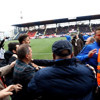 Maçın bitimiyle de Bodrumsporlu oyuncular ve teknik ekip soyunma odasına giderken yine saldırıyla karşılaştı. Soyunma odasına giden Bodrumsporlu oyuncular ve teknik ekibe tribünlerden yabancı madde yağdı. Bodrumspor kafilesi uzun bir süre soyunma odasında bekledikten sonra otobüsle İstanbul'a hareket etmek için yola çıktı. Yaklaşık 300 polis ve 30 jandarmanın görev aldığı güvenlik önlemlerine rağmen Bodrumspor otobüsü seyir halindeyken taşlı saldırıya uğradı. Şoför tarafında bulunan otobüs camı kırıldı. Olayların büyümemesi için yoğun çaba harcayan emniyet güçlerinin eşliğinde Düzce dışına çıktı. Bodrumspor yönetimi Düzce emniyetine teşekkür etti.