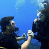 Karadağ, teklife el işaretiyle 'Tamam' diye cevap verdi. Aslan, Karadağ'a yüzüğünü de su altında taktı. İkili daha sonra su yüzeyine çıktı.