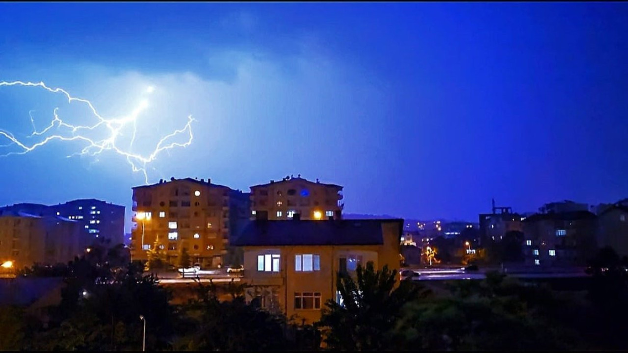 Şimşeklerin adeta gündüze çevirdiği gökyüzü anbean kameralara yansıdı.