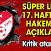 Yarın başlayacak Süper Lig'in 17. haftasının hakemleri açıkladı.